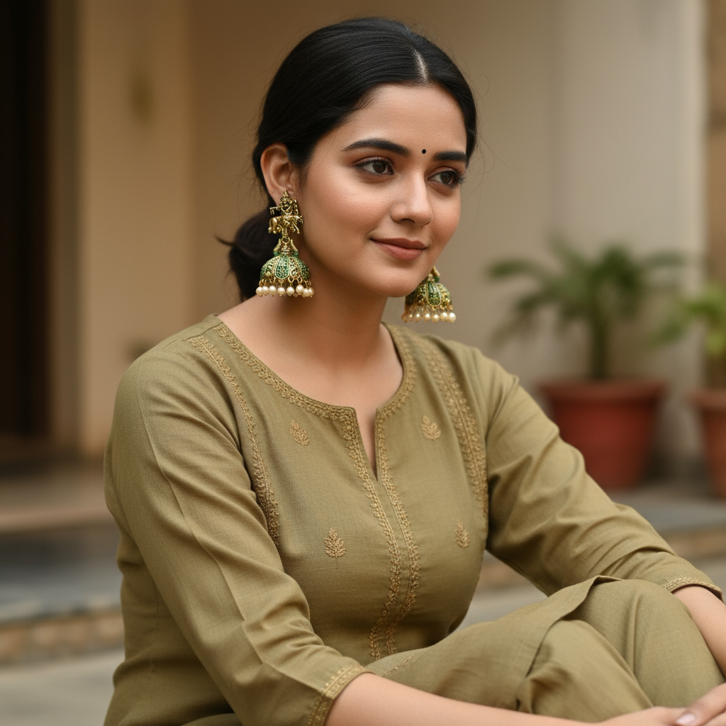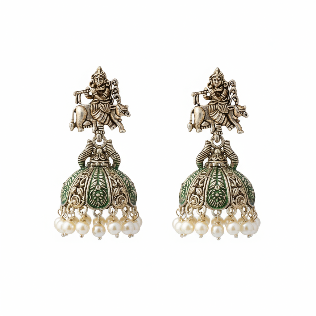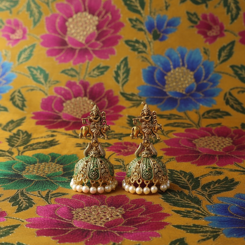 Be the first to review “Antique Gold Temple Jhumka Earrings with Goddess Motif & Pearl Drops (Copy)”