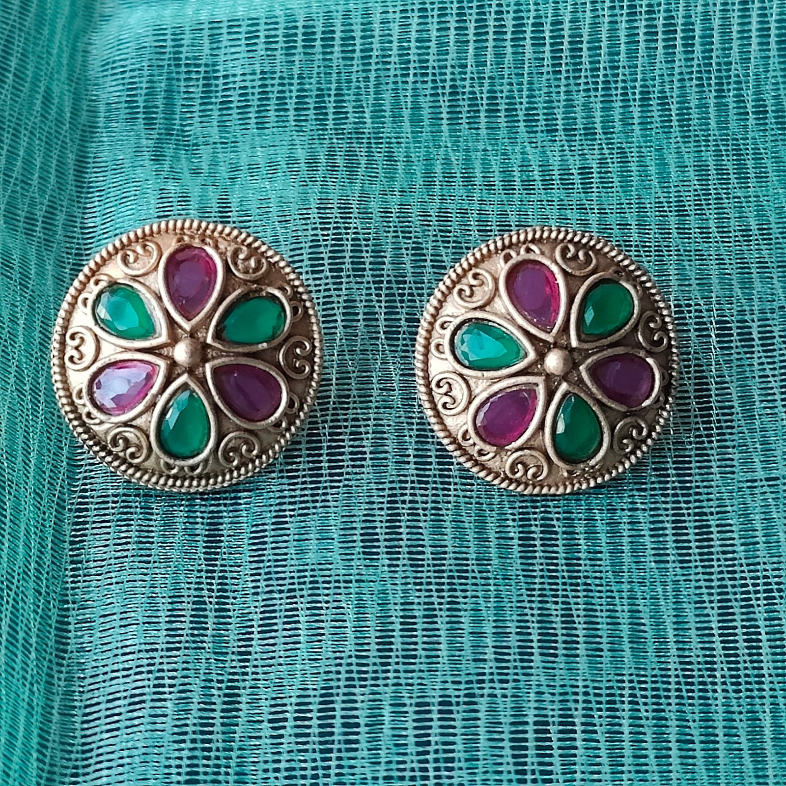 Be the first to review “Antique Gold Temple Necklace Set with Ruby-Green Beads & Enamel Pendant”