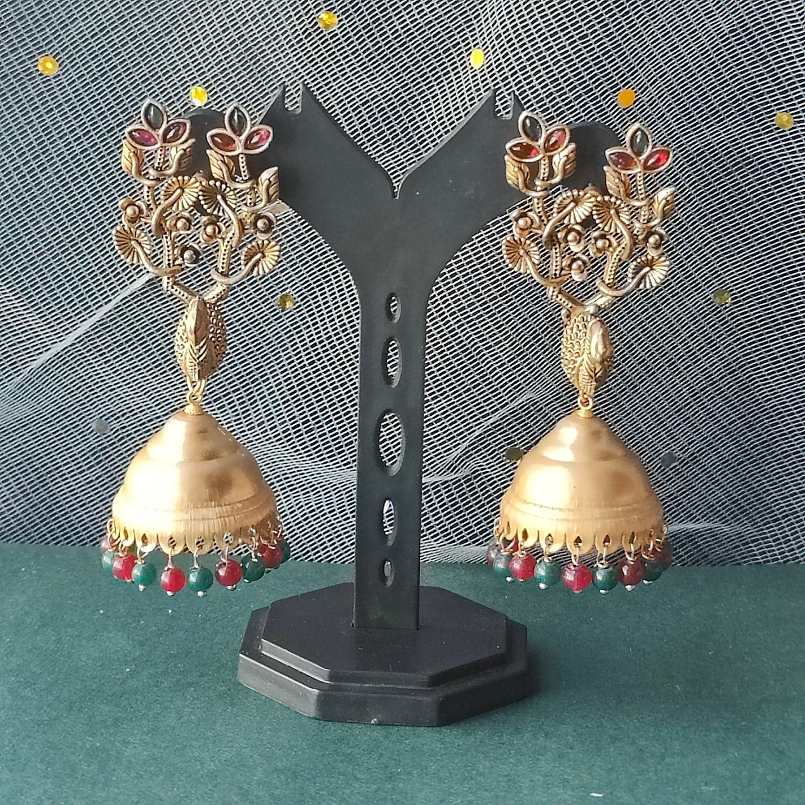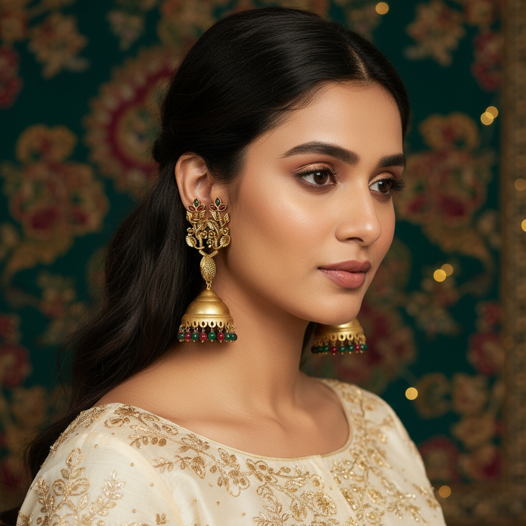 These earrings embody timeless elegance and are perfect for festive occasions, weddings, or cultural celebrations. Lightweight yet luxurious, they complement sarees, lehengas, and traditional attires beautifully.