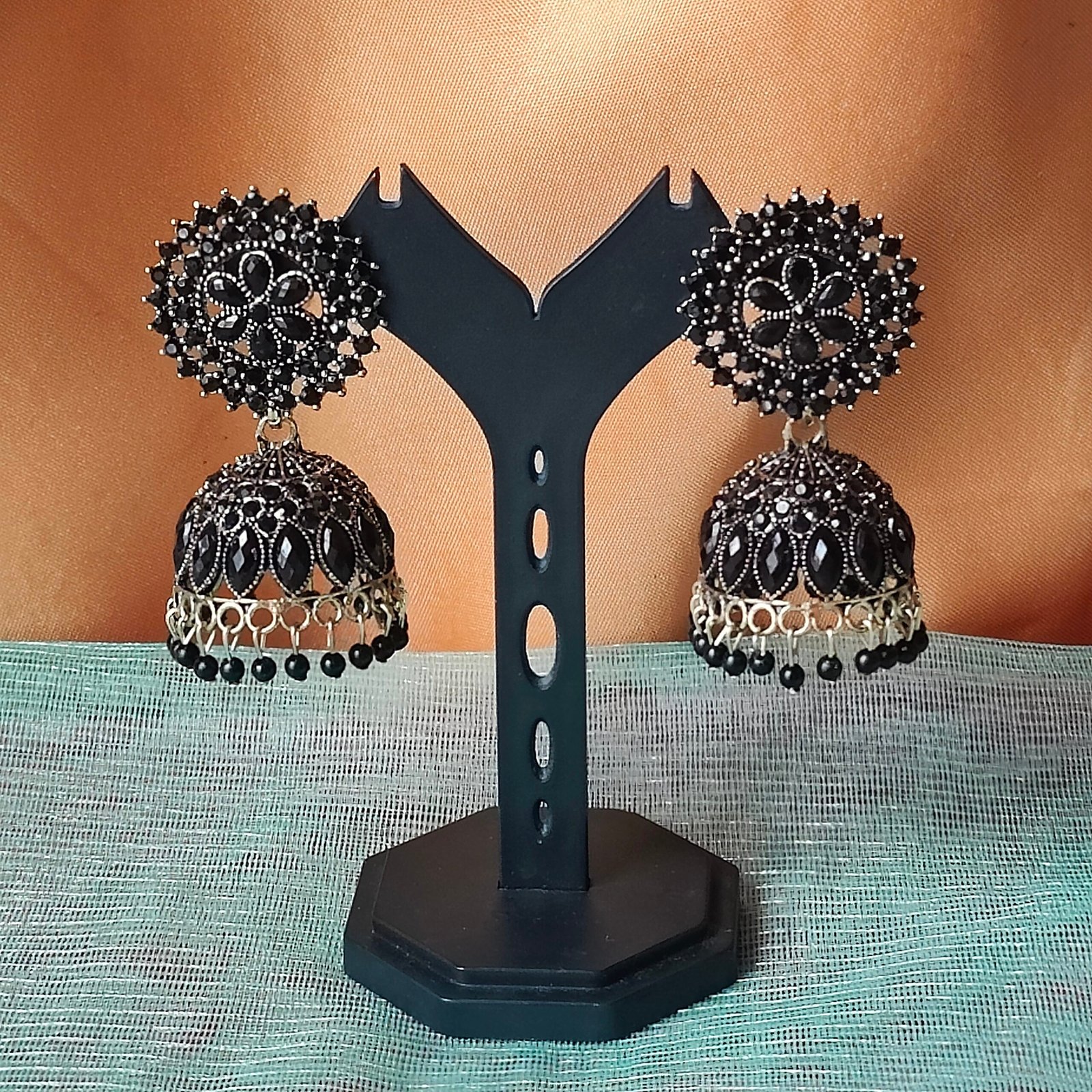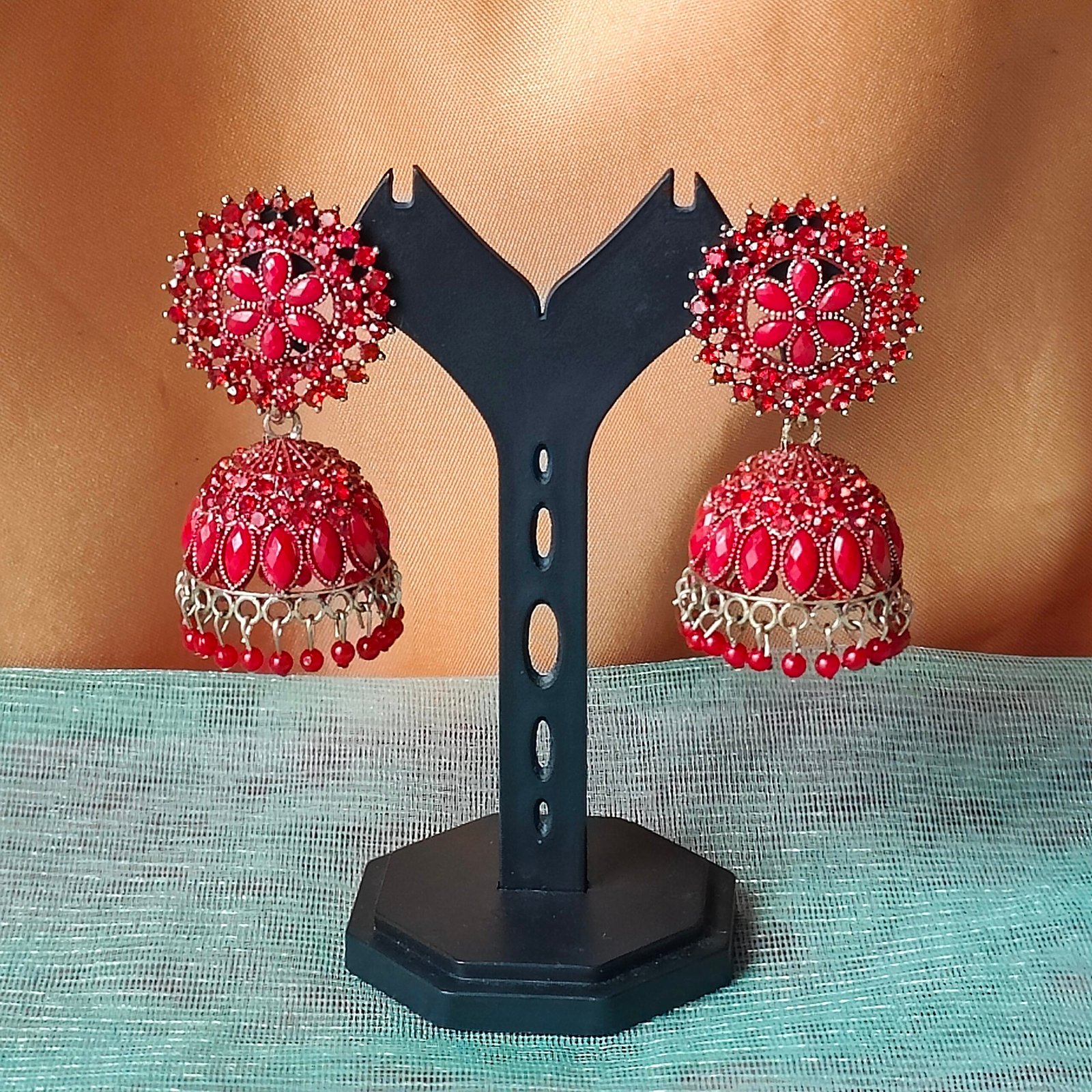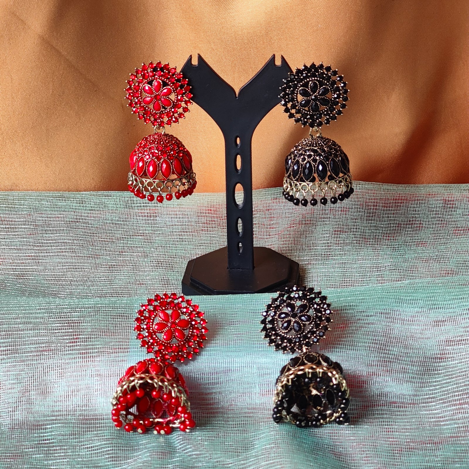 Be the first to review “Traditional Stone Jhumka Earrings in Red & Black”